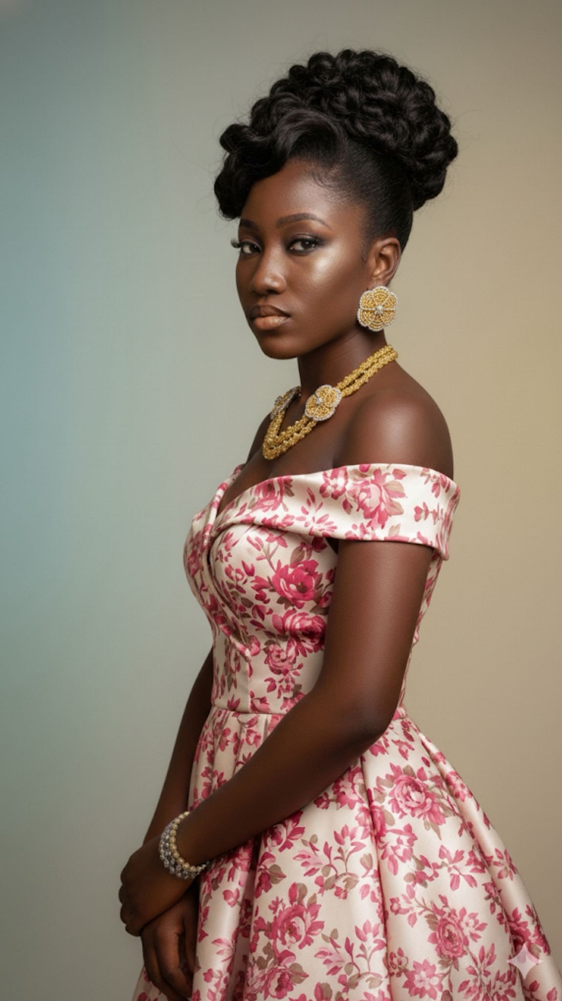 Gold Flower Shaped Necklace & Earing